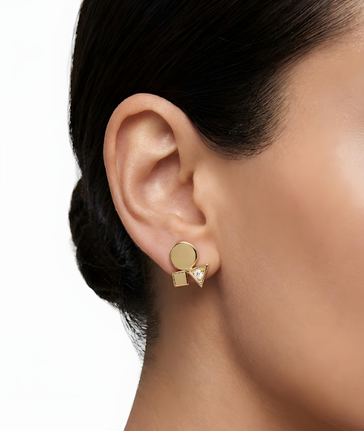 עגילי Balance Harmony מקולקציית BALANCE מבטאים איזון דרך מפגש הרמוני בין צורות גיאומטריות שונות. העיגול, הריבוע והמשולש משתלבים יחד למבנה פיסולי מדויק, שמלווה את האוזן באלגנטיות ומדגיש את היופי שבחיבור בין ניגודים.