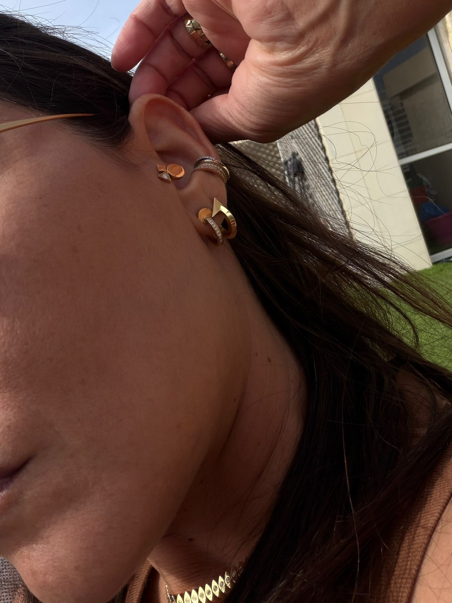 זהו תכשיט שמרגיש גיאומטרי, אך רך. איזון בין צורה לאור, בין דיוק לרגש, בין נוכחות לשקט.