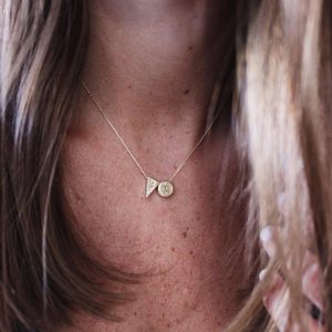 משקל תליון: 0.9-1.6 גר׳ בתמונה: שרשרת זהב צהוב דקה + עיגול M חריטה ונקודת יהלום + משולש L