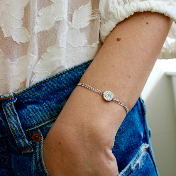 משקל תליון: 0.6-2.2 גר׳ בתמונה: צמיד כפול דק + כוכב L ושיבוץ גלאנץ