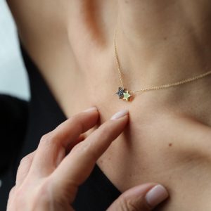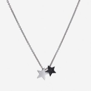 משקל תליון: 0.54-2.2 גר׳ בתמונה: שרשרת זהב לבן עבה + כוכב S זהב לבן כיסוי מלא יהלומים שחורים + כוכב L זהב אדום